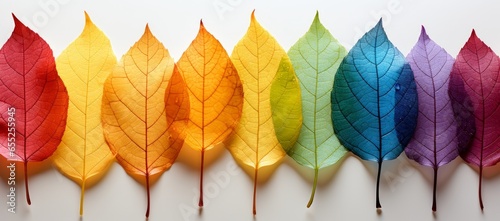 Obraz premium Illustration of a vibrant row of colourful leaves against a crisp white...