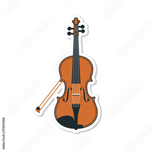 © Gilang, Fototapeta premium Illustration of a violin with a bow, isolated on white.