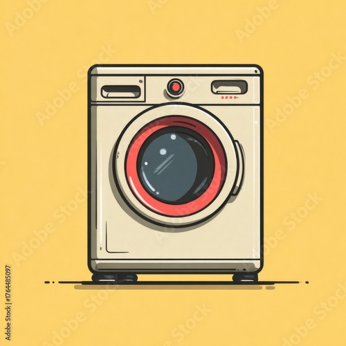 © marfuah, Fototapeta premium Illustration of a washing machine on a yellow background, clean laundry.