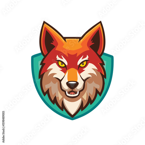 © FryArt, Fototapeta premium Illustration of a wolf head emblem, icon, shield graphic design for sports, mascot, e-sport logo