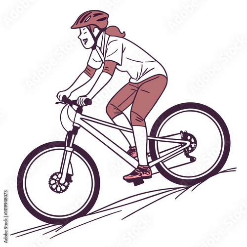 © MST RABEYA BEGUM, Fototapeta premium Illustration Of A Woman Enjoying Mountain Biking With Protective Gear