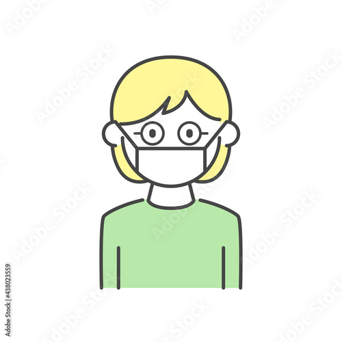 Obraz premium マスクをする女性 Illustration of a woman wearing a mask.