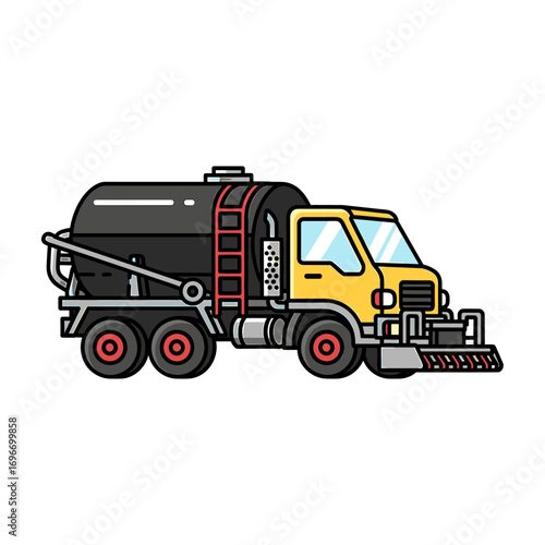© Rapupi, Fototapeta premium Illustration of a yellow and black water truck with a tank and ladder on a white background.