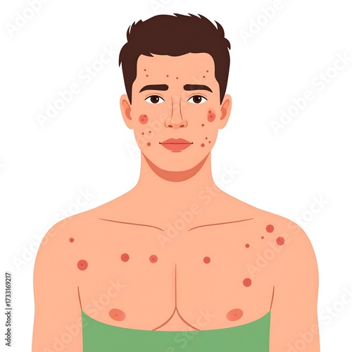 © wedang, Fototapeta premium Illustration of a young man with acne on his face and upper body