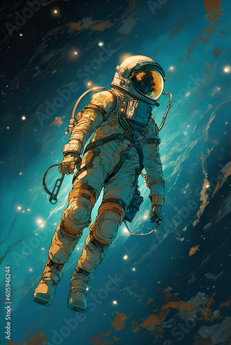 © Alina, Fototapeta premium Illustration of an astronaut in outer space, Generative AI