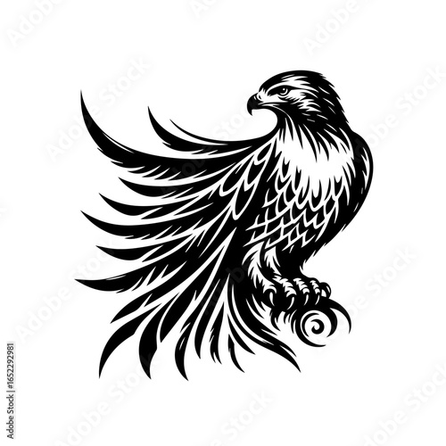 © Anwara Begum, Obraz premium Illustration of an eagle isolated on white background in black and white style