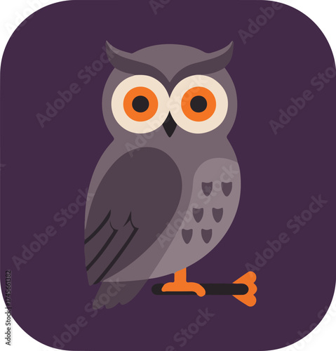 © Matt, Naklejka premium Illustration of an owl perched on a dark branch against a purple background