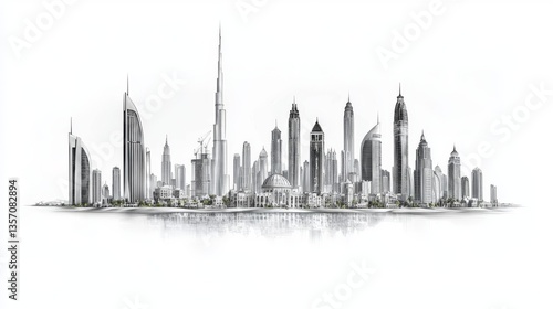 Fototapeta premium Illustration of an Urban Landscape featuring Towering Structures and a Cloudy Background
