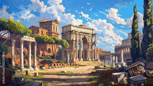 © Marco, Fototapeta premium illustration of ancient Rome aerial view by day in high resolution and quality
