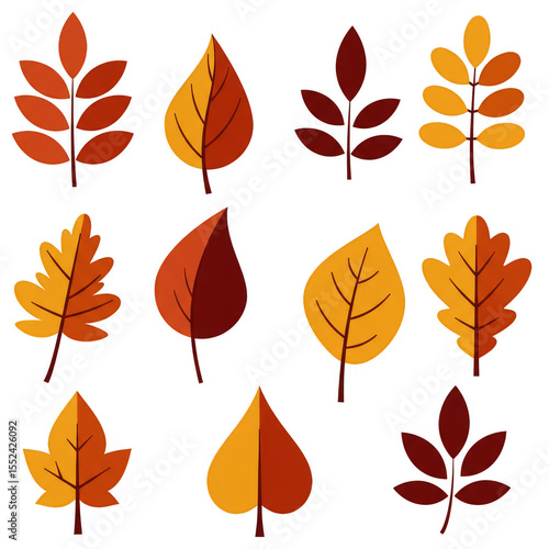 Fototapeta premium Illustration of Assorted Autumn Leaves in Red Yellow and Orange Tones