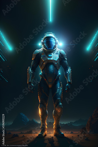 Fototapeta premium Illustration of astronaut on alien planet.