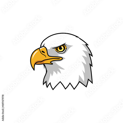 © BraveSpirit, Obraz premium Illustration of bald eagle head with fierce expression in white background – stock vector flat illustration