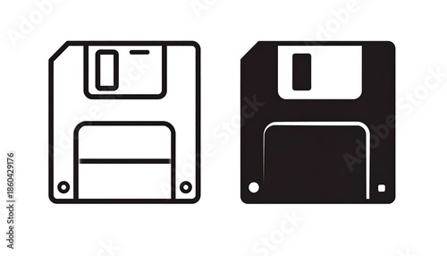 Obraz premium Illustration of black and white floppy disks on a plain white background...