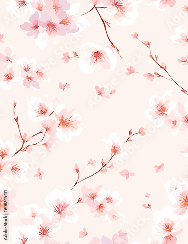 Fototapeta premium Illustration of blossoming cherry pattern, floral spring (Generative AI)