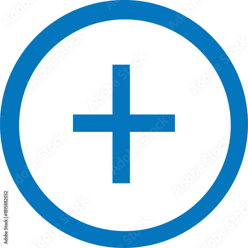 © MdRahinurIslam, Fototapeta premium Illustration of blue plus sign icon in a circle, representing addition, white