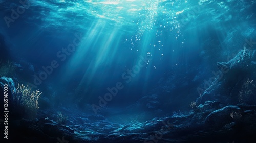 Obraz premium Illustration of blue sea underwater with air bubbles