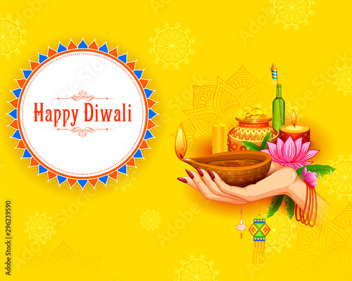 Naklejka premium illustration of burning diya on happy Diwali Holiday background for light...