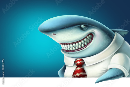 Obraz premium Illustration of business shark smiles slyly