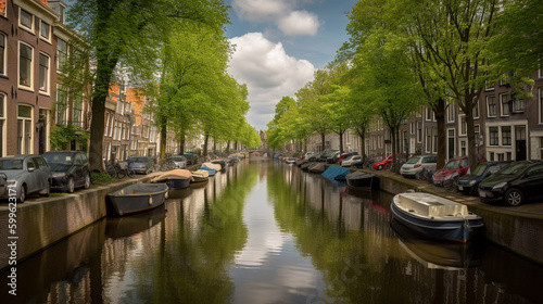 Fototapeta premium Illustration of canals in a traditiona Dutch city Generative AI.