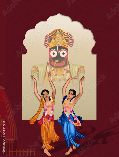 Fototapeta premium illustration of Chaitanya Mahaprabhu in devotion of Lord Jagannath with arch...