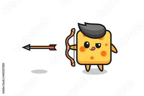 © heriyusuf, Fototapeta premium illustration of cheese character doing archery