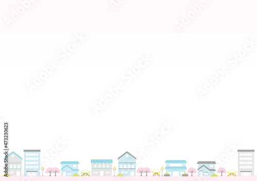 © yukik, Obraz premium illustration of cherry blossoms and town