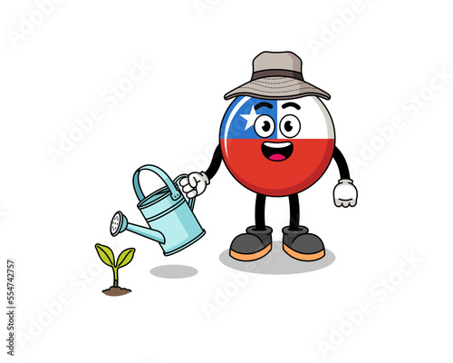 Fototapeta premium Illustration of chile flag cartoon holding a plant seed