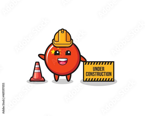 © heriyusuf, Obraz premium illustration of china flag with under construction banner