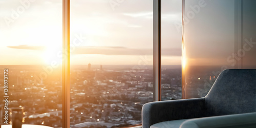 © Siasart Stock, Obraz premium Illustration of City View Sunset, Modern Interior Design