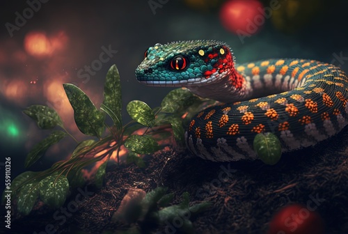 Fototapeta premium illustration of close-up portrait snake in natural habitat