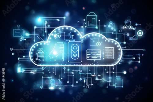 © Dale, Fototapeta premium Illustration of Cloud Computing Technology and Services in Computer Science