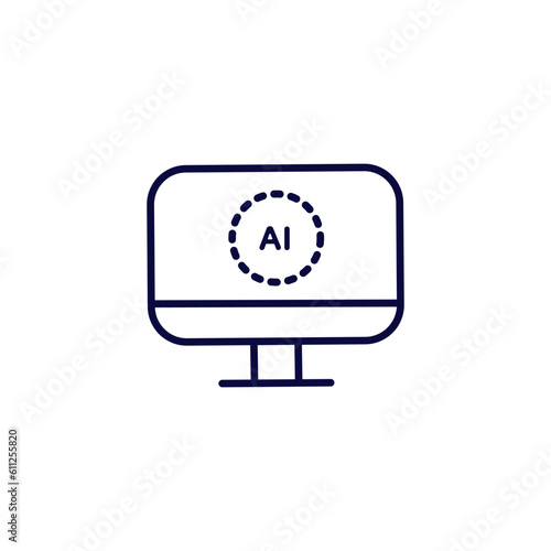 © Elene le13, Obraz premium Illustration of computer with artificial intelligence icon. Isolated on white background.