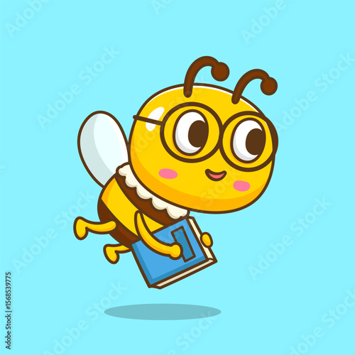 Obraz premium illustration of cute cartoon bee bring a book