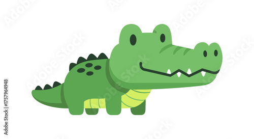 © Anisah, Naklejka premium Illustration of cute green cartoon crocodile smiling isolated on white background