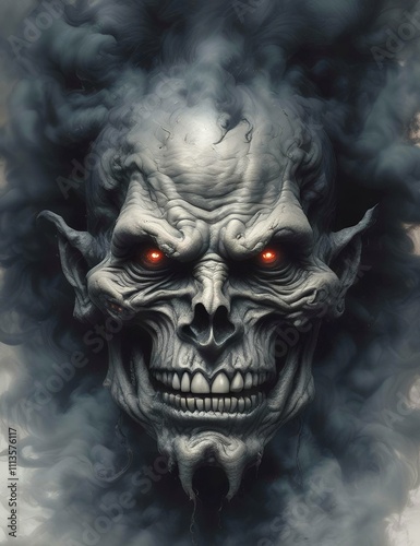 Naklejka premium Illustration of devil spooky face in dramatic smoke.