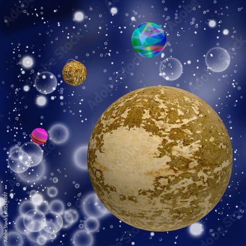 © cooperr, Fototapeta premium Illustration of different planets in outer space closeup