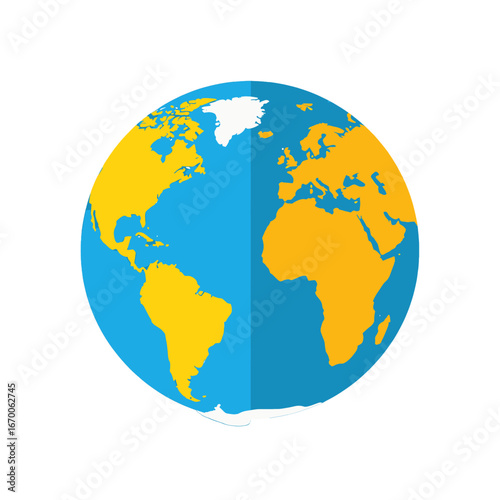 © Hartanto, Naklejka premium Illustration of Earth Globe with Blue Oceans and Yellow Continents on a White Background