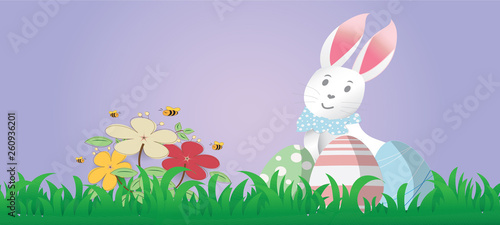 Obraz premium Illustration of Easter day with egg and rabbit.