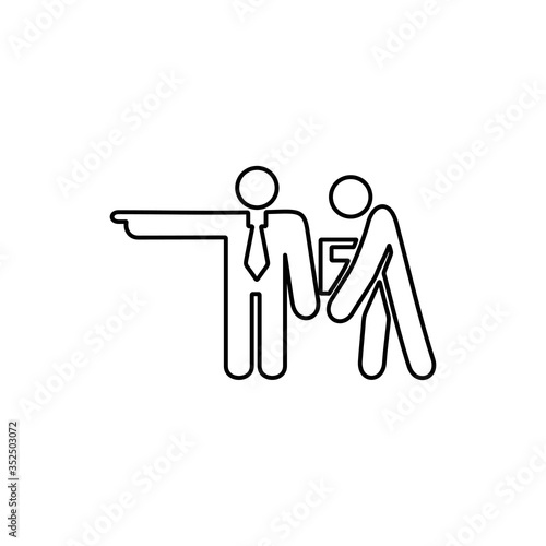 © Azar, Obraz premium Illustration of employee kicked out of company. Boss firing worker sign. Layoff symbol for modern business concept and web, mobile design.