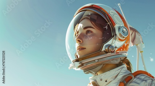 © Jeerawut, Obraz premium illustration of female astronaut looking away