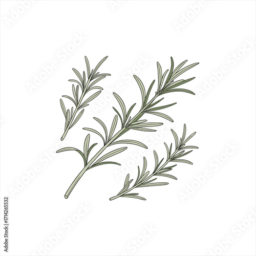 © Rakib Art, Obraz premium Illustration of fresh rosemary sprigs on a white background