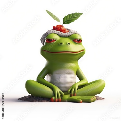 Obraz premium Illustration of green frog 3d with yoga pose