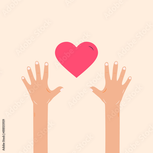 © NK, Obraz premium Illustration of hands reaching for a heart symbol