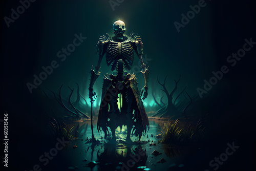Fototapeta premium Illustration of horror skeleton in dark environment