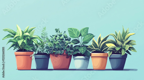Fototapeta premium Illustration of houseplants in decorative pots