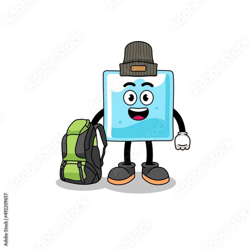 Fototapeta premium Illustration of ice block mascot as a hiker