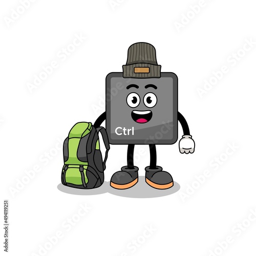 Fototapeta premium Illustration of keyboard control button mascot as a hiker