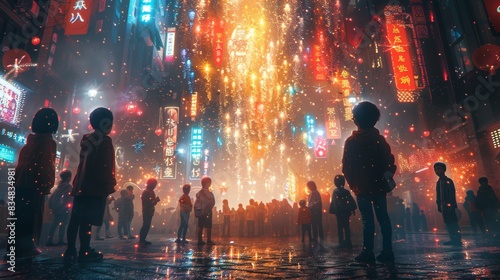 Obraz premium Illustration of kids enjoying a magic show at a Children's Day party.
