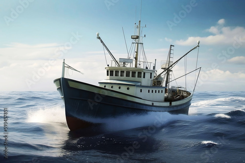 Fototapeta premium Illustration of Large Fishing Trawler Boat on the Ocean