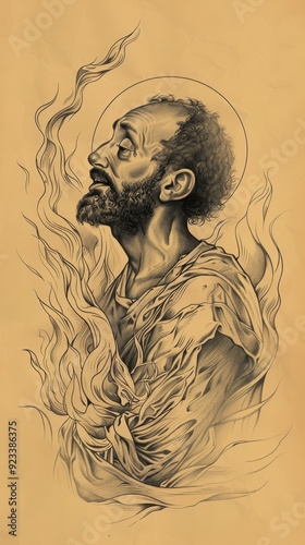 © T Studio, Fototapeta premium Illustration of Martyrdom of St. Polycarp with Flames and Serene Faith, Biblical Illustration, Beige Background, Copyspace